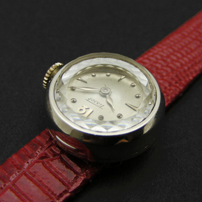 ティソの手巻き腕時計です。レディースアンティーク時計で絶大な人気を誇るロレックス社の「カメレオン」と同様、その日の気分や服装に応じてベルトをお選びいただけるユニークなモデルです。8色ありますので一週間毎日交換しても1色余る、豊富なカラーバリエーション。時計は価値のあるホワイトゴールドケースです。プリズム風防仕様ですので腕に着けるときらきらと輝きます。オメガ社と経営的、技術的な結びつきのあったティソですので、その作りの良さは保証付きです。最近のファッションブランドがこの時計同様にベルトの交換が可能なモデルを販売しているようですが、ケースの価値、機械の精密さ、そしてオンリーワンであることなど、現行の時計では満足できないあなたにオススメです。