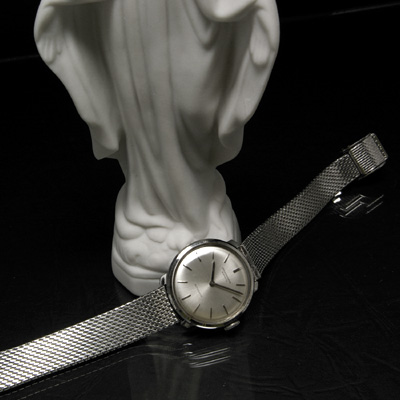 そもそも市場での流通数が他のブランドよりも少ないIWCの女性用腕時計ですので、同じ時計を見つけることはなかなか難しいでしょう。 IWCといえばメンズウオッチでも「質実剛健」な腕時計を製造することで知られており、シンプルなデザインに高性能な機械を組み合わせたモデルが多いですが、この女性用腕時計も類に漏れずシンプルなデザインです。シルバーを基調としたデザインですので使用するシチュエーションを選びません。オンタイムでも使うことの出来るアンティークウオッチといえます。小型、薄型ながら自動巻のムーブメントを搭載しており、時計との一体感は格別です。