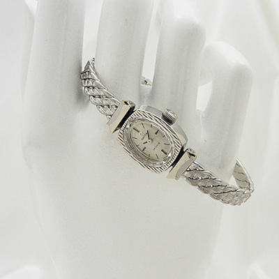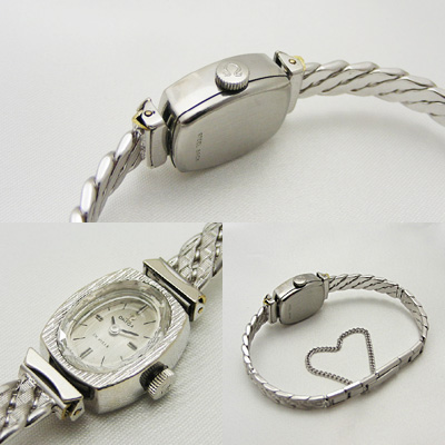 ケースにはわずかながらスレ、コキズはありますが、比較的状態の良い美品です。ケースはクリーニング済みです。ベルトは社外品です。ストレートタイプのラグ(ベルトの取り付け部分)ですので季節によっては革ベルトなどに交換するのも良いかも知れません。調整済みのムーブメントは問題なく動作しており、しばらくはメンテナンスの必要がありません。時計の精度は姿勢や利用環境によって異なりますが、1日に60秒内外のずれに収まっています。ケースの大きさは縦17mm(ラグは除きます)、横約14mm(竜頭は除きます)です。