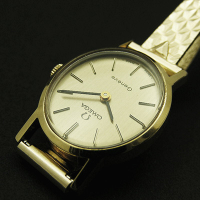 オメガのアンティークウオッチです。オーバルシェイプのケースにさり気ない個性が光る、オメガ「ジュネーブ」ヴィンテージ手巻き腕時計です。(さらに詳しく)