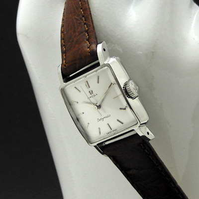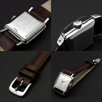 古い物ですのでケースには若干のスレやコキズはありますが、雰囲気を損なう致命的なキズはありません。分解掃除済みのムーブメントは問題なく動作しており、しばらくはメンテナンスの必要がありません。時計の精度は姿勢や利用環境によって異なりますが、1日に60秒内外のずれに収まっています。ベルトは社外品ですが質感のよい未使用品です、尾錠にはオメガマークがあります。ケースの大きさは約19×19mm(竜頭は除きます)です。ラグ(ベルト取り付け部)幅は13mm。