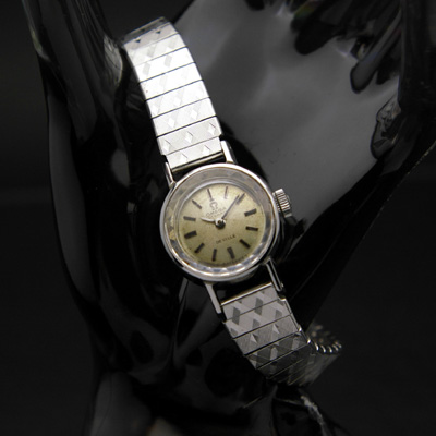 ケースには経年故のスレやコキズなどみられますが、致命的なキズも無く、おおむね状態の良い腕時計です。文字盤はアンティークならではの経年変化がありますが、比較的良い状態です。風防周囲にわずかながらくすみがありますが全体の雰囲気を損なうものではありません。ブレスレットはクリーニング済みです。動作確認調整済みのムーブメントは問題なく動作しており、しばらくはメンテナンスの必要がありません。時計の精度は姿勢や利用環境によって異なりますが、1日に60秒内外のずれに収まっています。ケースの大きさは約17mm(竜頭は除きます)、ラグ(ベルト取り付け部分)幅8mmです。腕周り最大約16cmまで使用可能です。