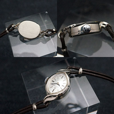 オメガのアンティークウオッチです。ホワイトゴールド素材のアーモンドケースに革紐ベルトをあわせました。アンティークウオッチの醍醐味を十分に堪能できる一本です。