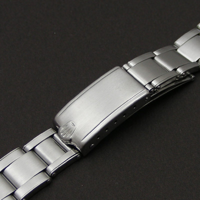 ロレックス、チュードルのオイスターケースモデルでベルト取り付け部の幅が17mmの時計に装着可能な巻込みブレスです。希少な 17mmサイズのブレスです。ボーイズサイズのオイスターケースに最適です。7+6コマの13コマです。全長約16.5cm。通常のオイスターケースの時計に装着すると、腕周りが約18.5cmから19cmになります(ケースサイズによります)。昨今、ブレスレットのみでの入手が難しくなっていますので、探しておられた方はこの機会にいかがでしょうか。革ベルトからブレスに変更を検討しておられた方にもおすすめです。17mmのブレスはかなり数も少ないため、お早めにご決断ください。