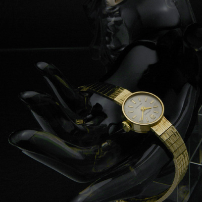 動作確認調整済みのムーブメントは巻上げたときの感触も良く、問題なく動作しています。しばらくはメンテナンスの必要がありません。時計の精度は姿勢や利用環境によって異なりますが、1日に60秒内外のずれに収まっています。ケース、ブレス、風防には経年の使用に伴うスレやコキズがみられますが、アンティークの味として納得できるレベルです。ブレスレットはオリジナルであるか、もしくは発売当時に宝飾店などで現在の仕様に交換されたと推量します。クリーニング済みですので気持ちよくお使いいただけます。ケースの大きさは縦横約14mm(竜頭は除きます)です。腕周りが最大で16.5cm 程度までご使用いただけます。