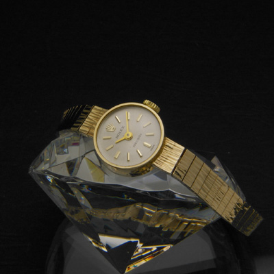 腕時計の人気ブランド、ロレックスのアンティーク・レディースウオッチです。その知名度やブランド力ばかりに注目が集まるロレックスですが、確かな製造技術による作りの良さが時代を超えて愛される理由のひとつです。この時計も製造から数十年が経過したヴィンテージモデルですが、現在もしっかりと時を刻み続けています。人気のカメレオンや、ロレックスの腕時計の中でも高級品であるチェリーニにも搭載されたCal.1400というムーブメントを搭載した機械式時計です。時間を刻む小さな機械には職人の知恵と技術が詰め込まれています。手巻きのムーブメントですので電池交換の必要がありません。毎朝巻上げることで時計に命を与えるのも機械式腕時計の楽しみの一つです。