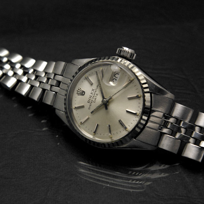 レディース・ヴィンテージ時計の人気モデル「ロレックス・オイスターパーペチュアルデイト」のシルバー文字盤です。シリアル番号から1966年頃に製造された時計だと思われます。その知名度やブランド力ばかりに注目が集まるロレックスですが、確かな製造技術による作りの良さが人気の理由であることは間違いありません。この時計も製造から数十年が経過したヴィンテージモデルですが、現在もしっかりと時を刻み続けています。