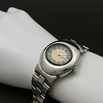 セイコーのレディースモデルの中でも飛び抜けて秀逸なデザインが魅力的な「ディアマチック」です。シャンパンゴールドをベースにグレーでサークルを描き、ツートーンとしています。オメガの人気ヴィンテージモデル「ダイナミック」を彷彿とさせる独特のケース形状は70年代の息吹を感じさせるデザイン。精度の高いハイビートモデルです。耳を近づけると機械式時計の心地よい作動音が聞こえます。ブレスレットはアンティークならではの3連の巻込みタイプです。軽い装着感で腕の負担を軽減します。デイ表示、デイト表示機能付です。現代の時計にはみられないデザインと、機械式時計の高い技術が詰め込まれたおすすめのヴィンテージ・ウオッチです。