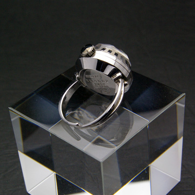 ケースには保管に伴う多少のスレが有るかもしれませんが、いたって良好な状態です。調整済みのムーブメントは問題なく動作しており、しばらくはメンテナンスの必要がありません。時計の精度は姿勢や利用環境によって異なりますが、1日に60秒内外のずれに収まっています。ご使用毎にゼンマイを巻上げてお使いください。可変式のリング部分は内径約18mm径です。ケースサイズは横約17mm(竜頭含まず)です。