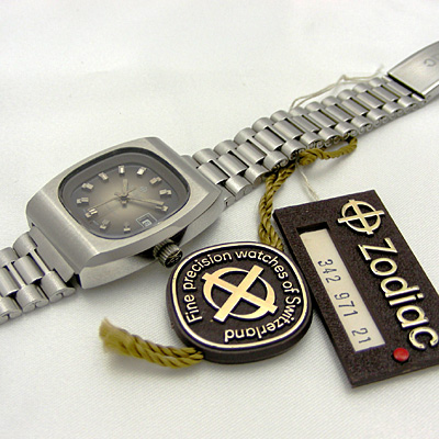 「黄道十二宮」の名を冠した会社「ゾディアック」は、ロレックス社よりも古い歴史をもつ時計メーカーです。現在は日本に総代理店がなくなってしまったため、新作を目にする機会は減り、アンティークやヴィンテージでしか手に入れることは出来ません。この時計はおそらく1970年、1980 年代の製造ではないかと思います。当時のタグのついたデッドストック品ですので、使用によるキズや汚れなど無く良好なコンディションです。ブラウングラデーション文字盤は、よく見ると波のような曲線が描いてあり、手の込んだ逸品であることがわかります。女性用機械式時計には少ない自動巻ですので、腕の動作でゼンマイが巻き上がる時計との一体感も魅力です。日付表示機能付ですので実用的です。またブレス仕様ですので季節を問わずお使いいただけます。スーツスタイルや、Tシャツにジーンズなどのファッションにも合います。質の良いアンティークと状態の良い現行品、両方の魅力を兼ね備えた数少ない一本です。