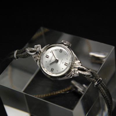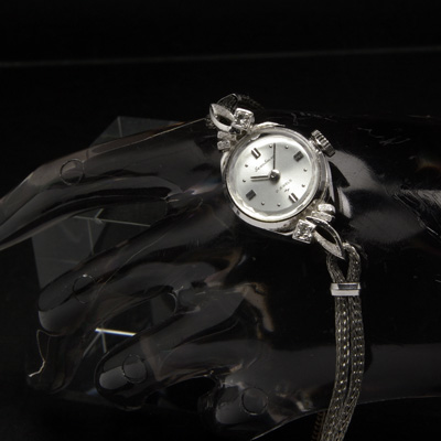 機械式時計の技術が円熟した1950年代以降、女性用の時計は小さく、華奢に製造されるようになり、よりアクセサリーライクな時計が市販されるようになりました。今回ご紹介する一本はなかでも特に小さい部類にはいるようです。一見シルバー単色のシンプルな腕時計にみえますが、よくみると各パーツの素材や研磨方法、仕上げを変化させることで様々な表情の銀色で構成された高級感のあるモデルであることがわかります。飽きの来ないラウンドダイアルに有機的なデザインのラグ(時計本体とブレスレットの接合部分)を組み合わせ、宝飾品のような完成度の高いデザインに仕上がっています。