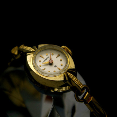 ハミルトンの手巻き腕時計です。ハミルトン社は1892年に創業、100年以上の歴史をもつ時計メーカーです。伝統的な技法を重んじるスイスの時計作りとは全く異なったアプローチで画期的な腕時計を次々と世に送り出し、時計史のみならず工業史にもその名を刻む時計メーカーとなりました。