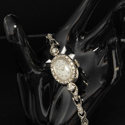 ハミルトンのアンティークウオッチです。ケース同様14Kホワイトゴールドで制作されたブレスレットにはダイヤ装飾まで施されています。(さらに詳しく)