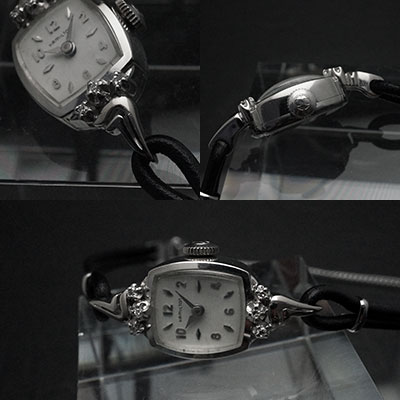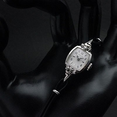 ハミルトン社は1892年に創業、100年以上の歴史をもつ時計メーカーです。伝統的な技法を重んじるスイスの時計作りとは全く異なったアプローチで画期的な腕時計を次々と世に送り出し、時計史のみならず工業史にもその名を刻む時計メーカーとなりました。今回ご紹介するのはハミルトンの女性用手巻き腕時計です。