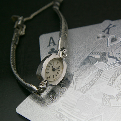 フォーマルなパーティスタイルやドレスアップした時はもちろん、カジュアルなスタイルに女性らしさを加えるアクセントにも適しています。今、注目されつつある「アンティーク風」腕時計とも、またブランド名ゆえに価格の高いブランドウオッチとも違う、本物の価値がわかる貴女にオススメの一本です。